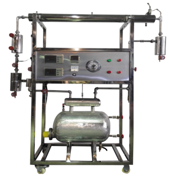 電蒸汽鍋爐、套管換熱器、蒸汽冷凝罐、蒸汽及水流量測試設(shè)備、加熱由固體調(diào)壓模塊無級調(diào)節(jié),由多路巡檢儀顯示的溫度測試系統(tǒng) ,不銹鋼臺架及控制屏 等。