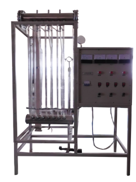 模擬工業(yè)鍋爐上的上鍋筒(可視)、下集箱,玻璃上升管、玻璃下降管,繞在玻璃上升管的電加熱器,加熱控制開(kāi)關(guān)組,集成調(diào)壓模塊調(diào)節(jié)電流電壓,電流表,電壓表,不銹鋼支架等。