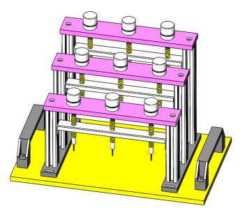 功能:立柜式倉庫模塊可為碼垛模塊、裝配模塊成品工件或其他模塊工件提供放置空間。 主要由移動(dòng)式底板,安裝支架等組成。 |