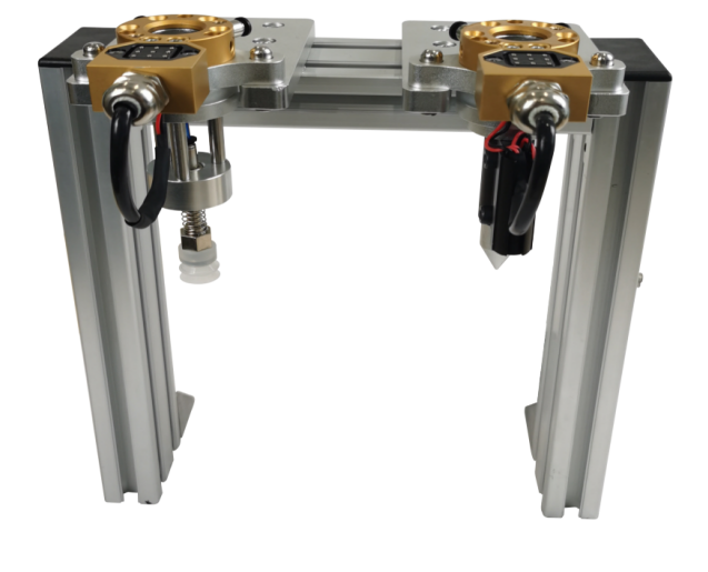 該模塊設(shè)置了兩組末端快換夾具,可供使用者練習(xí)精密的工業(yè)機器人快換夾具更換操作,學(xué)習(xí)末端快換夾具的機械、電路及氣路連接原理。
