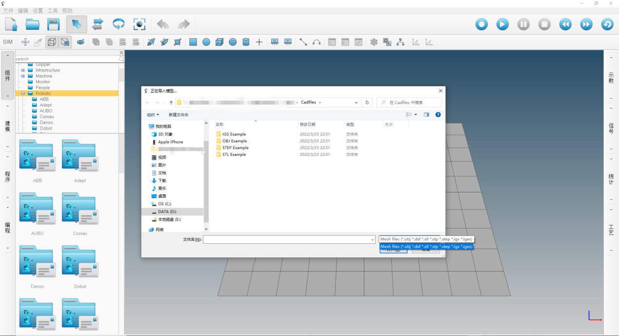 2 )支持多種格式的三維 CAD 模型,可導(dǎo)入擴(kuò)展名為 step 、 igs 、 stl 等格式;