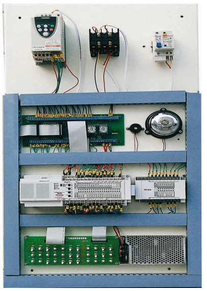 電梯的電氣控制系統(tǒng)采用三菱可編程控制器 (PLC) 實現(xiàn)邏輯智能控制,松下 VF200 交流變頻調(diào)速驅(qū)動,其硬件構(gòu)的組成及功能與實際電梯完全一樣。 具有自動平層、自動開門關(guān)門、順向響應(yīng)轎廂內(nèi)外呼梯信號、直駛、電梯安全運行保護以及電梯急停、慢上、慢下、照明、風(fēng)扇等功能。且具有性能可靠、運行平穩(wěn)、操作簡單、能耗低和便于教學(xué)等特點。