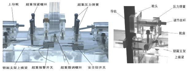 本公司設計的透明限速器,能調整到電梯模型實現限速器觸發(fā)安全鉗制動所需要的速度,真實演示電梯安全運行保護功能 ( 電梯模型轎廂運行速度低于實際電梯的速度 20-30 倍)。由于實際電梯無法實現在故障狀態(tài)下的超速運行,因此永遠無法真實演示限速器觸發(fā)安全鉗制動的安全運行保護功能,讓學生觀察了解安全運行保護機電聯合控制的過程。