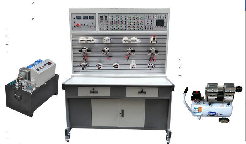 該實訓臺為鐵質(zhì)雙層亞光密紋噴塑結(jié)構(gòu)。美觀大方,堅固耐用,操作方便。基本配置為:氣動實訓元件1;氣動實訓PLC控制模塊1套;低噪音空壓機1臺;液壓實訓元件1套,液壓實訓PLC控制模塊1套;液壓實訓泵站1臺。(計算機根據(jù)學校要求另行配置)