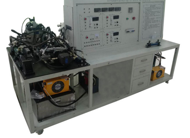2、機架采用冷軋鋼板按工業(yè)標準產(chǎn)品精制加工,表面噴塑處理,液壓臺為“L”型平臺式結(jié)構(gòu),水平臺面為鋼板、漏網(wǎng)結(jié)構(gòu),立式面為顯示部分(精密壓力表,數(shù)顯二次儀表等);水平臺面上裝有伺服/比例系統(tǒng)測試裝置(用于做伺服/比例溢流閥的位置、力控制實驗),此伺服/比例系統(tǒng)測試裝置由高強度槽鋼精制而成,能夠防止臺面變形以及實驗時保證最佳穩(wěn)定性。