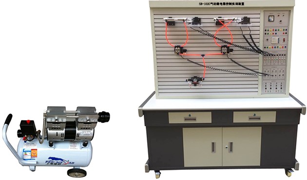 1、氣動繼電器控制實訓(xùn)裝置主要由實訓(xùn)桌、實訓(xùn)臺、氣動元件和電器控制器件等組件組成。