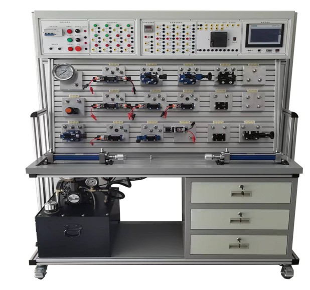 ?? 液壓與 PLC控制實訓(xùn)裝置是我公司根據(jù)高校機電一體化對電、液控制的教學(xué)大綱要求,我公司液壓與PLC控制液壓實訓(xùn)設(shè)備的優(yōu)點,采用了開放型實訓(xùn)臺結(jié)構(gòu),廣泛征求專家教授與老師的意見,經(jīng)不斷創(chuàng)新改進研制而成的。