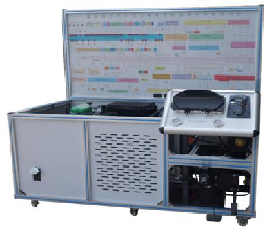2) 實訓臺面板上安裝有真空壓力表及燃油壓力表,可實時觀察發(fā)動機運行狀況;面板上打印有完整彩色電路原理圖,可直觀對照電路圖和混合動力系統(tǒng)實物,認識和分析控制系統(tǒng)的工作原理;