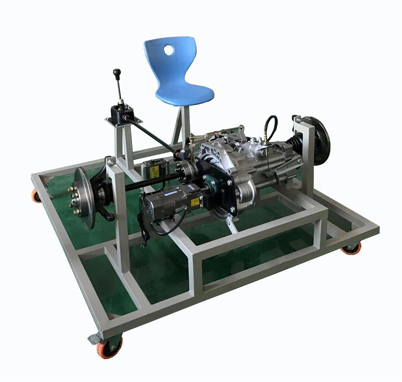 實訓臺由半軸、前橋、手動變速器總成、減速機、移動式滾輪臺架組成。臺架裝有萬向輪,便于移動,性能可靠,并且有設計合理、美觀、實用等特點。通過拆裝實訓,可充分了解傳動系統(tǒng)的結構原理,裝配技巧,同時可方便的檢測裝配的效果和質量。
