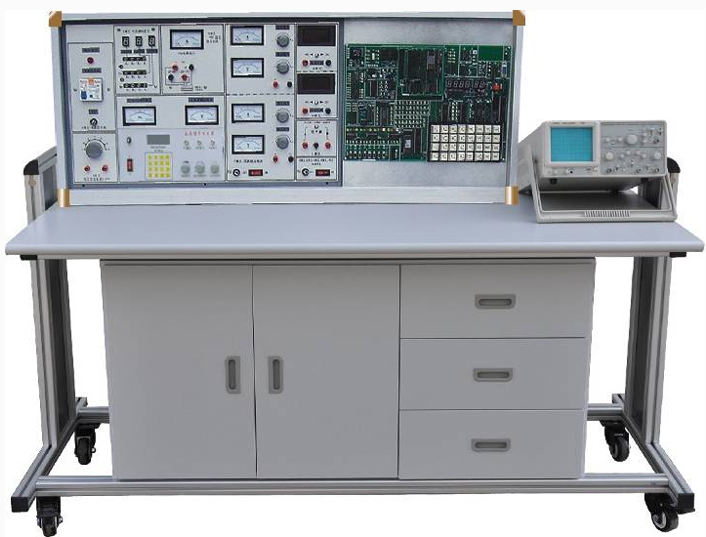 3、示教控制臺(tái) 1 臺(tái):由示教實(shí)驗(yàn)操作桌、實(shí)驗(yàn)臺(tái)、演示控制屏組成,能分別無(wú)線遙控控制 12 臺(tái)學(xué)生實(shí)驗(yàn)臺(tái)的電源。尺寸為 160 × 70cm 。