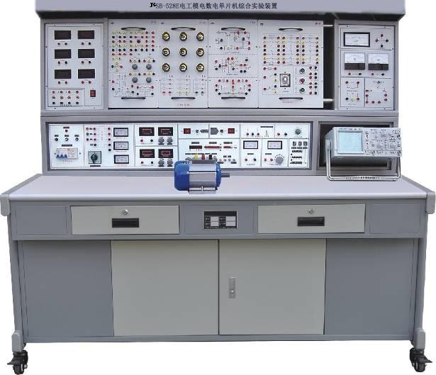 電工模電數(shù)電單片機(jī)綜合實驗實驗臺具有較完善的安全保護(hù)措施,較齊全的功能。電工、電氣控制、 PLC 可編程控制實驗器件采用適應(yīng)性強(qiáng)的模塊式掛箱;在實驗屏上完成實驗,實驗方法靈活,動手能力強(qiáng),實驗連線接點接觸可靠,符合不同深度,不同廣度的教學(xué)要求。數(shù)電、模電在九孔通用電路板掛箱上完成,根據(jù)實驗復(fù)雜程度選取掛箱個數(shù),根據(jù)實驗電路在通用電路板上拼插實驗電路,實驗元件制成透明盒體,直觀性好,盒蓋印元件符號,線條清晰美觀。盒體與盒蓋結(jié)合采用較科學(xué)的壓卡式結(jié)構(gòu),維修、更換元件拆裝方便。JG SB-528E 立式電工模電數(shù)電單片機(jī)綜合實驗裝置,該實驗臺結(jié)構(gòu)合理,學(xué)??呻S時按需要增添新的模塊掛箱,靈活、經(jīng)濟(jì)。