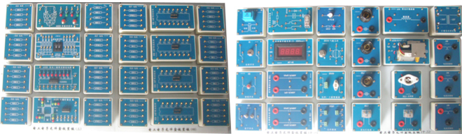 2 、由學(xué)生獨立自主去搭建實驗、實訓(xùn)電路,各種模塊精心配置,有多個應(yīng)用組合部件,模塊采用透明有機盒,兼作實物示教,一舉多得。電工電子單元模塊共有 156 個,其中不僅包括實訓(xùn)指導(dǎo)書項目所需的單元,還為學(xué)生可能進行的創(chuàng)新與探索,配置了較齊全的單元。