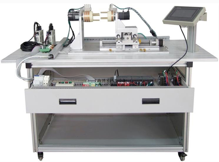1. 機(jī)構(gòu)部分:包括實訓(xùn)桌、工業(yè)鋁型材、抽屜、二軸旋轉(zhuǎn)模型(含精密滾珠絲桿、主軸同步機(jī)構(gòu)、檢測傳感器、限位開關(guān))等組成。