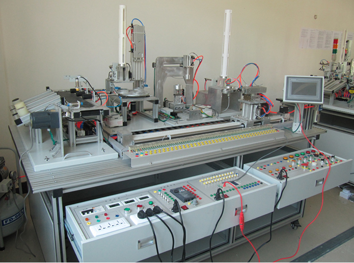 光機電一體化控制實訓裝置由由鋁合金導軌式實訓臺、典型的機電一體化設備的機械部件、 PLC 模塊、變頻器模塊、按鈕模塊、電源模塊、模擬生產設備實訓模塊、接線端子排和各種傳感器、計算機等組成。整體結構采用開放式和拆裝式,實訓裝置用于機械部件組裝,可根據現(xiàn)有的機械部件組裝生產設備,也可添加機械部件組裝其他生產設備,使整個裝置能夠靈活的按教學或競賽要求組裝具有生產功能的機電一體化設備。模塊采用標準結構和抽屜式模塊放置架,互換性強;按具有生產性功能和整合學習功能的原則確定模塊內容,使教學或競賽時可方便的選擇需要的模塊。設備需完全符合電工電子全國職業(yè)技能大賽所要求,同時還要求具有可拓展功能,可以組成更加大型的生產模擬系統(tǒng),以配合各個用戶學校不同層次,不同專業(yè)的教學及培訓要求。