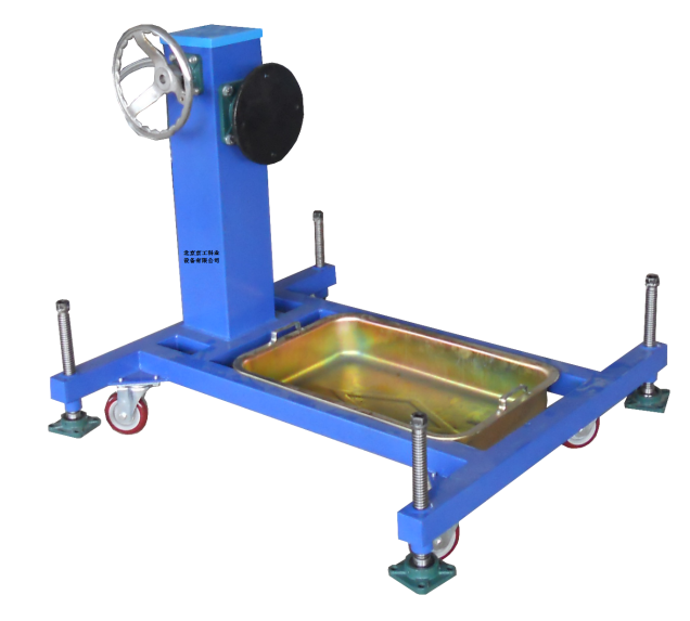 【標(biāo)準(zhǔn)配置】 2、減速機(jī)(50#減速機(jī),減速比例為1:60)、翻轉(zhuǎn)臺(tái)架、接油盤、移動(dòng)腳輪等?!竟δ芴攸c(diǎn)】1、把發(fā)動(dòng)機(jī)固定在翻轉(zhuǎn)架上,可軸向360度翻轉(zhuǎn)并可在任意角度鎖定,確保翻轉(zhuǎn)輕松,自鎖穩(wěn)固,操作空間大,方便拆裝;學(xué)員可在拆裝臺(tái)架上進(jìn)行發(fā)動(dòng)機(jī)拆裝和修理的實(shí)操,充分滿足發(fā)動(dòng)機(jī)解體、裝復(fù)、調(diào)試、檢驗(yàn)全過(guò)程的要求。2、大面積沖壓接油盤,保證剛度結(jié)實(shí);做到工具、廢油、零部件不落地,培養(yǎng)良好的工作習(xí)慣; 3、翻轉(zhuǎn)架采用高強(qiáng)度國(guó)標(biāo)鋼結(jié)構(gòu),并采用框架式結(jié)構(gòu),雙軸承支承,確保有足夠的承重能力,確保拆裝時(shí)的安全需要