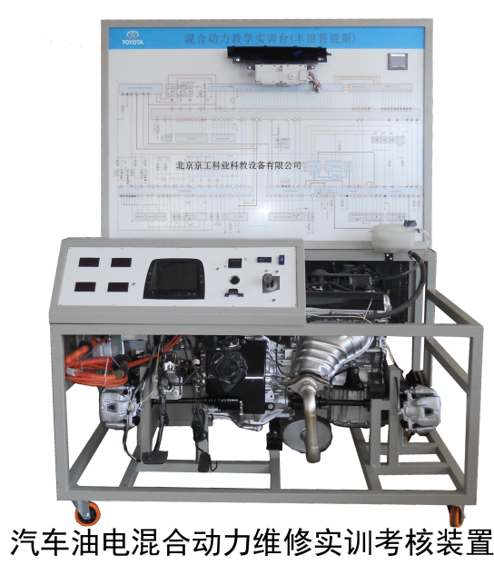 豐田普瑞斯1.5L油電混合動力系統(tǒng)總成(包含原車電控發(fā)動機、油電混合驅動橋、HV蓄電池等附件總成)、原車油電混合動力系統(tǒng)控制電腦、電子油門加速機構、組合儀表、油電混合動力起動運行所有相關的原車附件、故障模擬考核和排除系統(tǒng)、原車電路原理圖板及檢測端子、備用60AH大容量蓄電池、大容量不銹鋼油箱、油電混合動力加速機構、控制面板柜、可移動臺架、臺架備用電源總開關、原車故障檢測通訊的診斷座、散熱系統(tǒng)、臺架操作說明書、實驗指導書等附件。