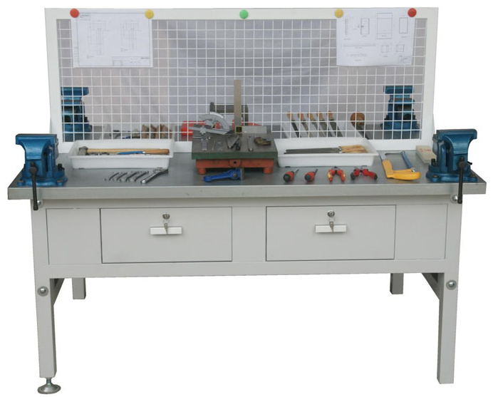 1、鉗工桌采用標(biāo)準(zhǔn)的組合式拆裝結(jié)構(gòu)、構(gòu)件互換一致性好。具有雙面四工位、四個大容積的暗鎖抽屜、可調(diào)重型墊腳。以利于運輸、安裝、存儲放置、適應(yīng)于各種不同實訓(xùn)場地。