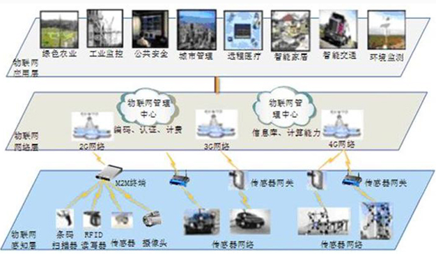 物聯(lián)網是一種通過射頻識別、紅外感應器、全球定位系統(tǒng)、激光掃描器等信息傳感設備,按約定的協(xié)議,把任何物品與互聯(lián)網連接起來,進行信息交換和通訊,以實現(xiàn)智能化識別、定位、跟蹤、監(jiān)控和管理的網絡。該技術是集傳感技術、通信技術、網絡技術、計算機技術、控制技術等多種技術于一體的綜合應用學科。物聯(lián)網由應用層、網絡層、感知層等三層結構組成。