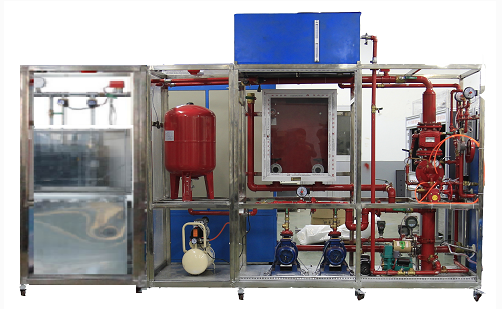 系統(tǒng)裝置主要有系統(tǒng)設備有控制區(qū),消防供水池、高位水泵保護區(qū)域、等主要配備有預作用報警裝置、消防氣壓罐、消防火栓箱、消防栓、消防帶、消防水泵、閉式噴淋頭、高位水泵、備用泵、氣壓泵、感煙探測器、感溫探測器、自動充氣裝置、水流指示器、信號碟閥、壓力開關的狀態(tài)檢測,設有全透明護區(qū)域、具有火災模擬演示等組成。管路采用渡鋅管進行設計,渡鋅管的切割、套絲、安裝和通水試驗操作,通過控制系統(tǒng)實現(xiàn)預作用噴淋火實訓、通過控制系統(tǒng)可實現(xiàn)預作噴淋滅火功能、消防栓滅火功能